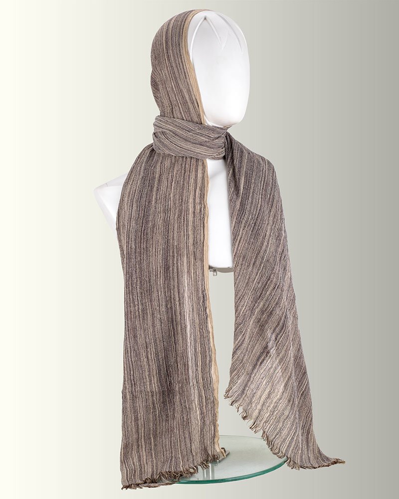 Meet the Neo Thai – Original Kuwaiti Scarf: a lightweight, breathable piece featuring a subtle crinkle texture and vertical melange stripes for a naturally elegant look. The soft handfeel and gentle drape make wrapping easy and comfortable, while the fringed ends add a refined casual finish. Available in versatile neutral shades (ash grey, sandy beige) to pair seamlessly with everyday outfits—from workwear to relaxed weekends.