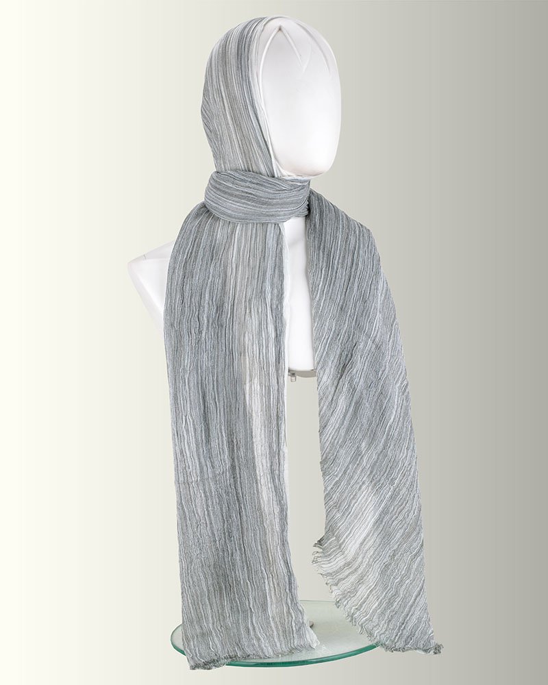 Neo Thai – Original Kuwaiti Scarf with a soft crinkle–striped weave. Ultra-light, breathable, and effortlessly chic in modern neutral tones.