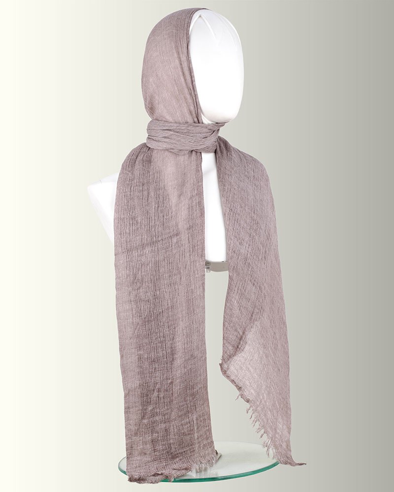 A premium Kuwaiti linen hijab with a soft raffled texture – elegance and comfort in every fold.